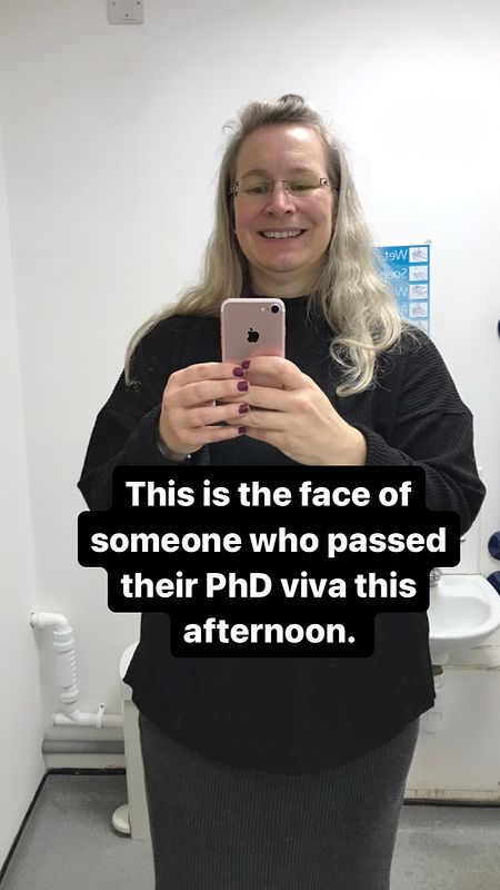 After leaving the Viva, I went back to by main supervisors office with her to talk through the outcome, and all of the examiners popped in to say hello and to congratulate me again.