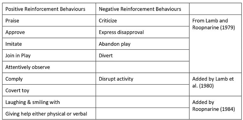 Techniques identified by Lamb & Roopnarine (1979), Lamb et al (1980) and Roopnarine (1984)